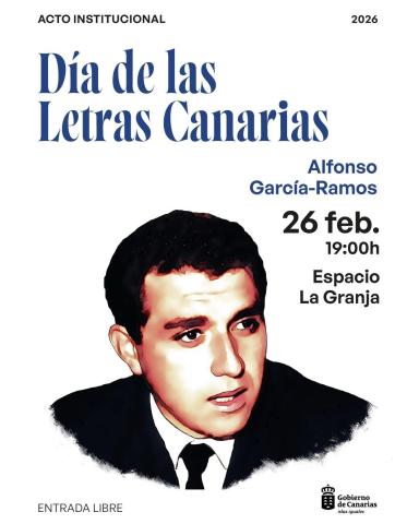 El próximo 26 de febrero de 2026 a las 19:00h, el Espacio La Granja acogerá el acto institucional del Día de las Letras Canarias en homenaje al escritor y periodista Alfonso García-Ramos.