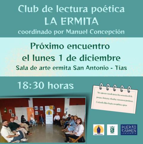 01-12-2025 18:30Club de lectura poética La Ermita, en Tías, Lanzarote