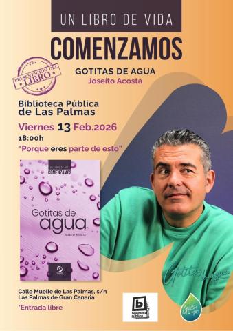 Presentación del libro "Gotitas de Agua" del escritor Joseíto Acosta! Te esperamos este viernes 13 de Febrero a las 18:00h en la Biblioteca Pública de Las Palmas (Calle Muelle, s/n) para compartir esta obra juntos.