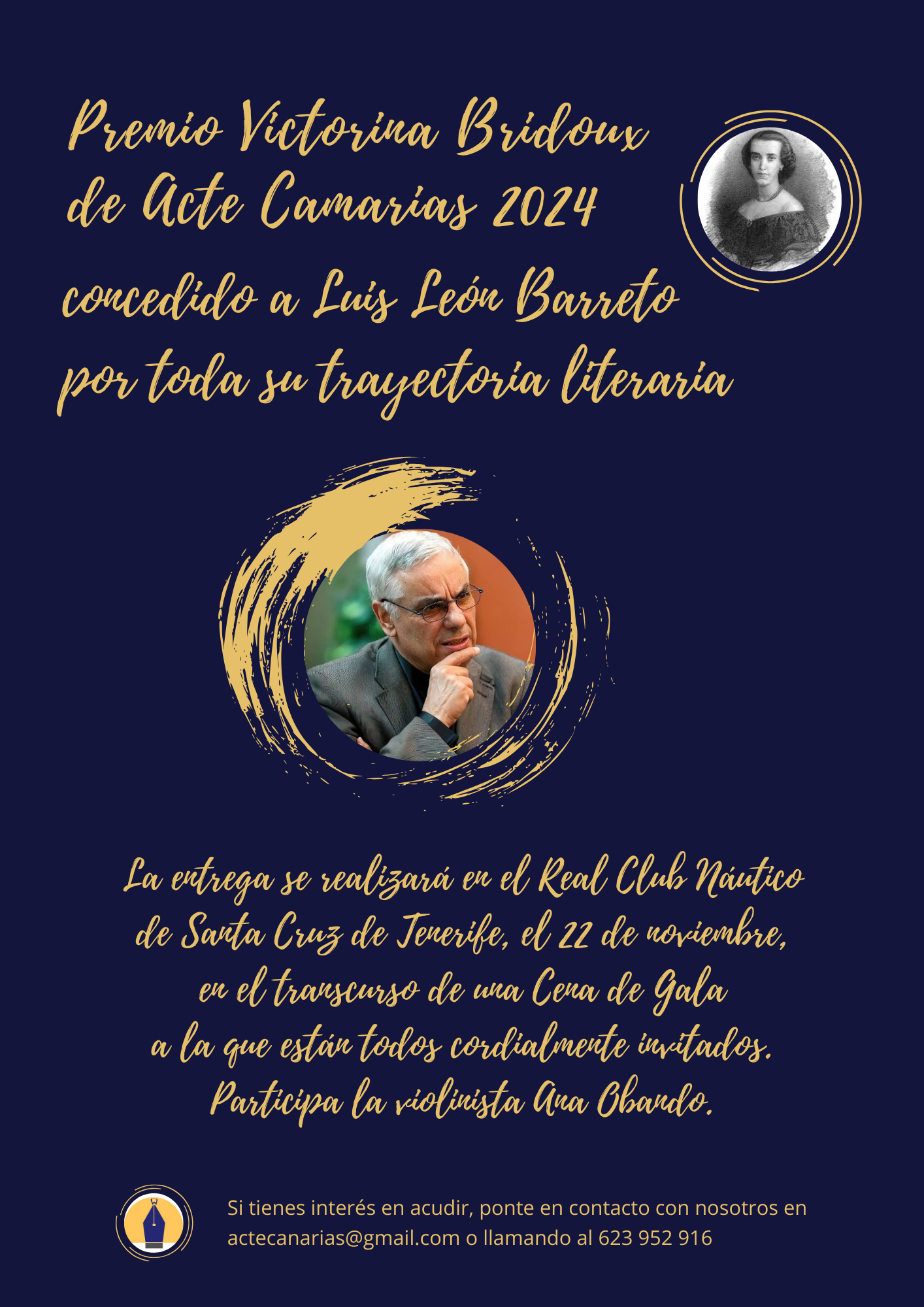 En el año 2024 el Premio Victorina Bridoux de las Letras recayó en la figura del escritor grancanario Luis León Barreto.