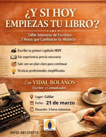21-03-2026 10:00Taller Intensivo de Escritura con Vidal Bolaños en Gáldar