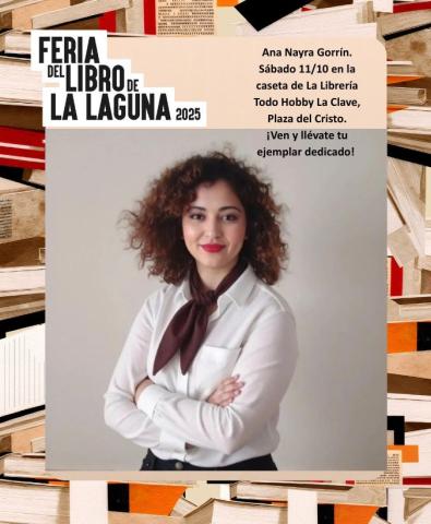 Ana Naira Gorrín Navarro en la Feria de La Laguna, Tenerife. Será la ocasión perfecta para encontrarnos, charlar de literatura y, por supuesto, para que puedan adquirir ejemplares de todas sus obras publicadas. - 11-10-2025 10:00