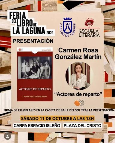 El libro "Actores de reparto", de Carmen Rosa Glez. Martín, estará en la Feria de La Laguna. - 11-10-2025 13:00