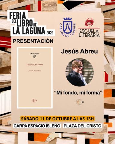Presentación de "Mi fondo y mi forma", de Jesús Abreu, en la Feria del Libro de La Laguna, Tenerife. - 11-10-2025 10:00