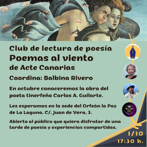 Club de lectura "Poemas al viento" en La Laguna, Tenerife, se vuelve a reunir en octubre de la mano de Balbina Rivero, vocal de Acte Canarias. - 29-09-2025 18:30