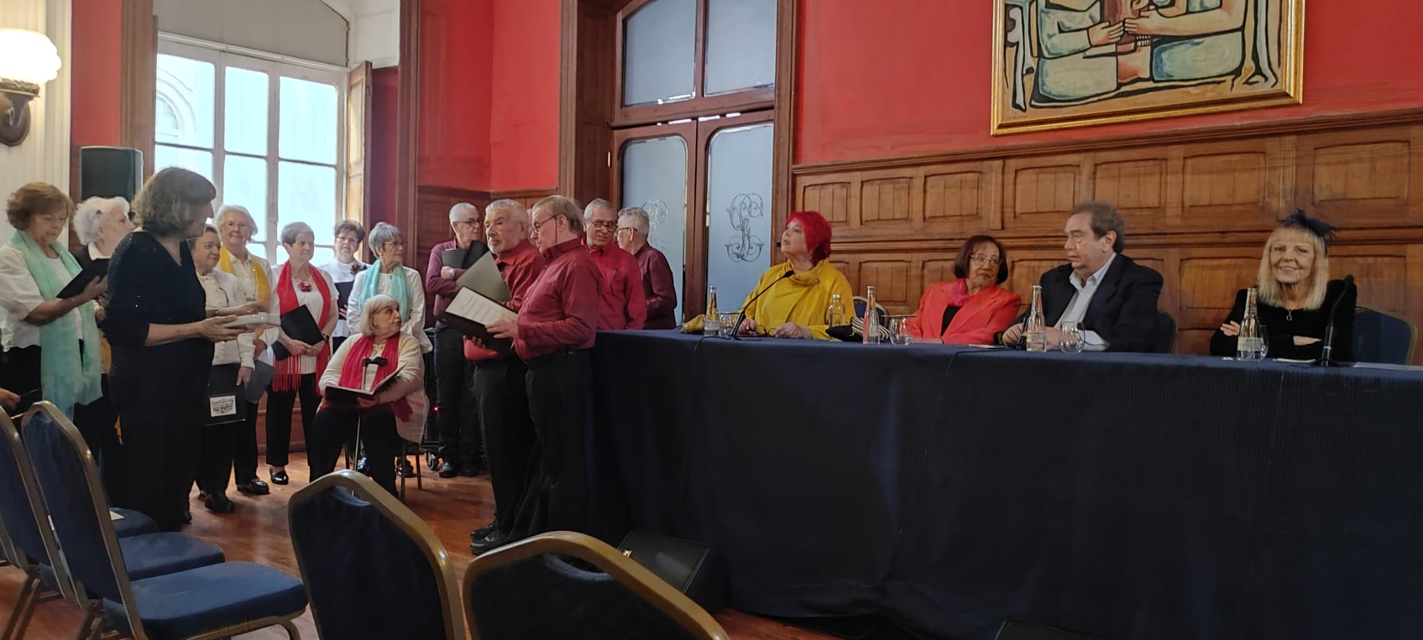 También estuvo arropada Menchu por familiares y amigos, así como por la Coral Arenales, dirigida por Teresa Ceballos, donde la propia escritora también participa.