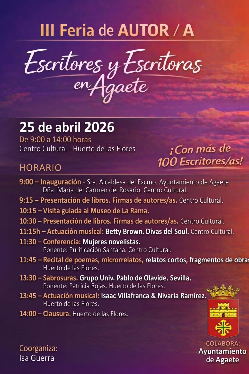 Este 25 de abril, a las 09:00 horas, te esperamos en la III Feria de Autores y Escritoras en Agaete.