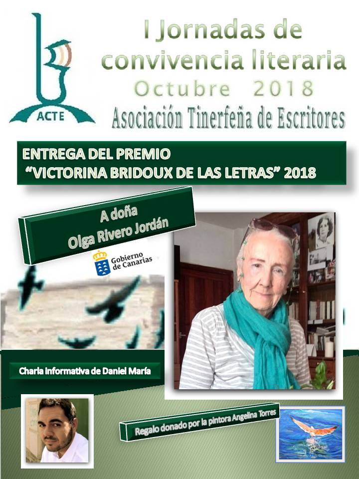 La primera homenajeada, en 2018, con el Premio Victorina Bridoux de las Letras, fue la escritora Olga Rivero Jordán.