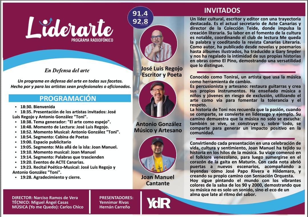 Programa Liderarte del 16/9/2025, con Hernán Carreño y Yennimar Rivas. Icoden Daute Radio.