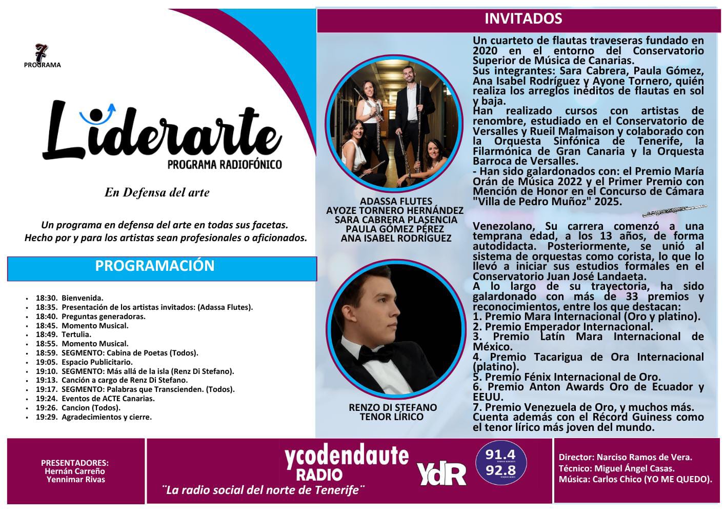 Programa Liderarte emitido en directo el 22 de julio de 2025 en Ycoden Daute Radio.