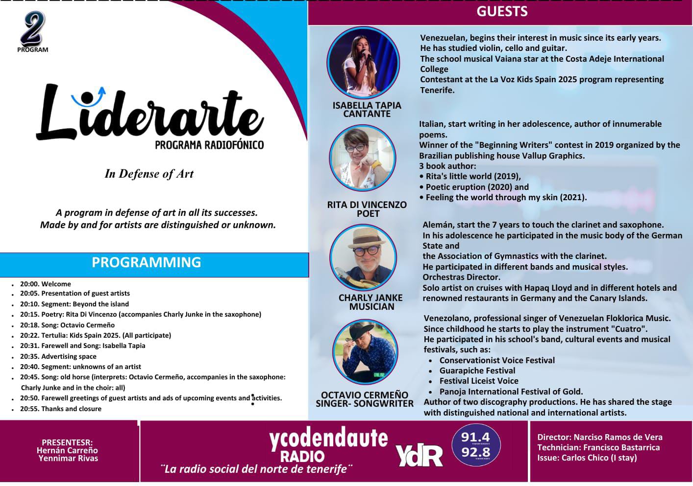Programa número 2 de Liderarte en Ycoden Daute Radio y Diario digital La Voz de Tenerife Norte.