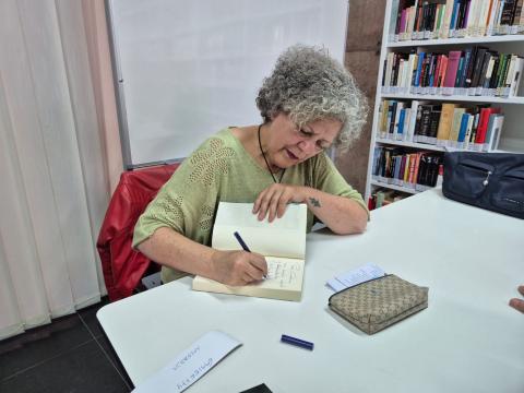 Entre un nutrido grupo de personas interesadas en la obra, la autora nos volvió a deleitar con sus palabras, con las historias que descansan tras las líneas de la novela. Con una sensibilidad descriptiva admirable, María del Mar nos adentró en la genealogía de una familia canaria marcada por la emigración a Venezuela, por la lucha política dentro y fuera de la universidad de La Laguna, por los silencios que acecharon a generaciones enteras. Pero, sobre todo, nos recordó quiénes fuimos como pueblo asediado por la miseria en la posguerra y quiénes fueron esas viudas blancas: mujeres viudas sin muerto que criaron solas a sus hijos, que remendaron dignidad al amanecer y cosieron hambre por las noches todos los días de su vida. Sin duda, es una novela de obligada lectura para conocer mejor esas páginas de nuestra historia que suelen quedar en la penumbra de lo poco importante.
